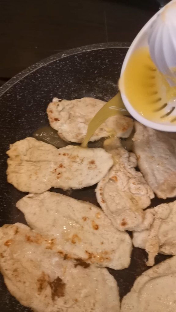 Neem de plakjes kipfilet, als ik het vind, koop ik altijd vrije uitloop kip.