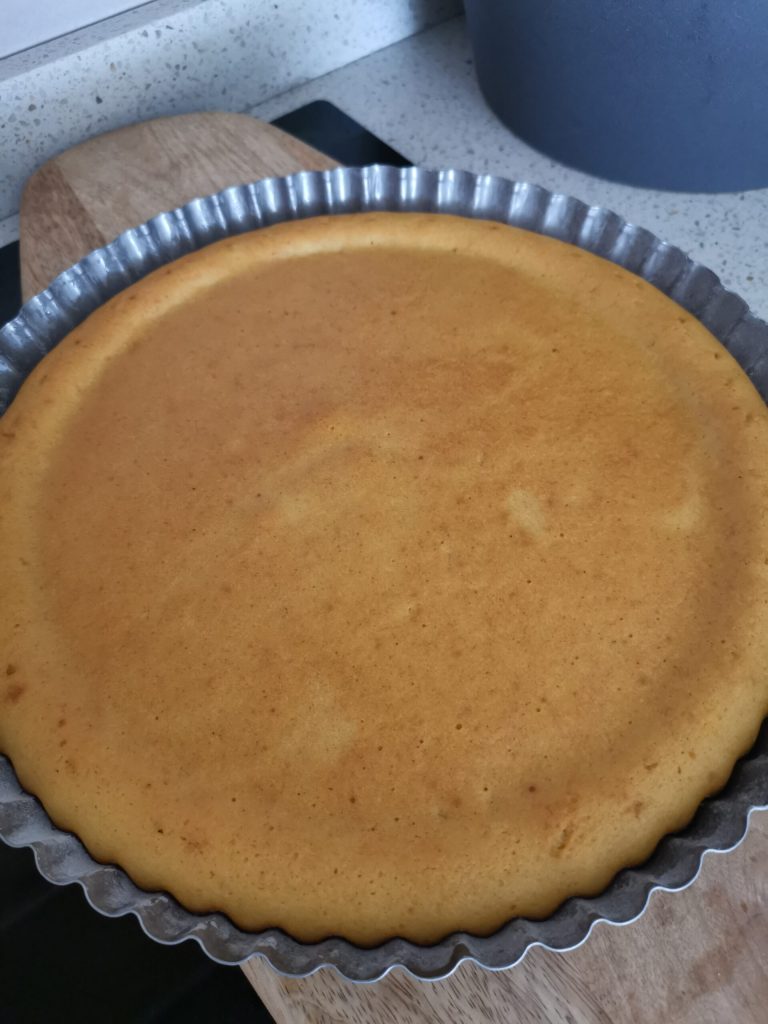 Giet het deeg in de ingevette en met bloem bestoven vorm en bak in een voorverwarmde statische oven op 170 graden gedurende ongeveer 22 minuten.