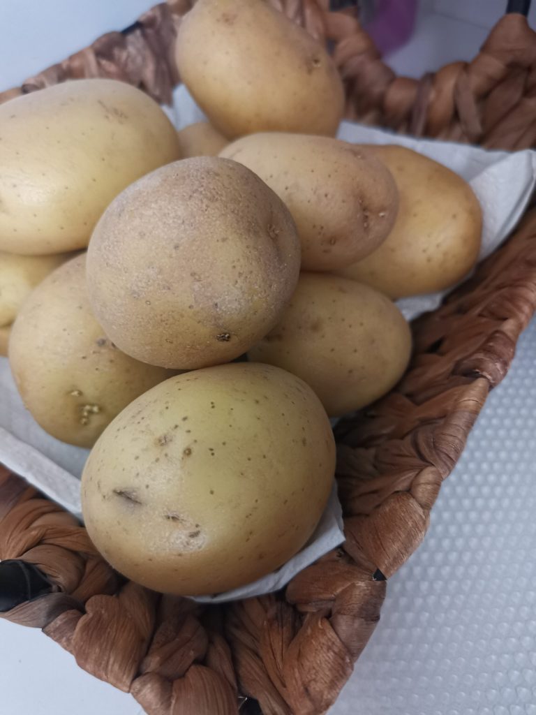 Neem een pan en snijd de 3/4 aardappelen, in ronde plakjes, niet te dun, en breng op smaak met olie, fijngesneden knoflook zonder de kern, een beetje zout, peterselie en water om ze te bedekken.
