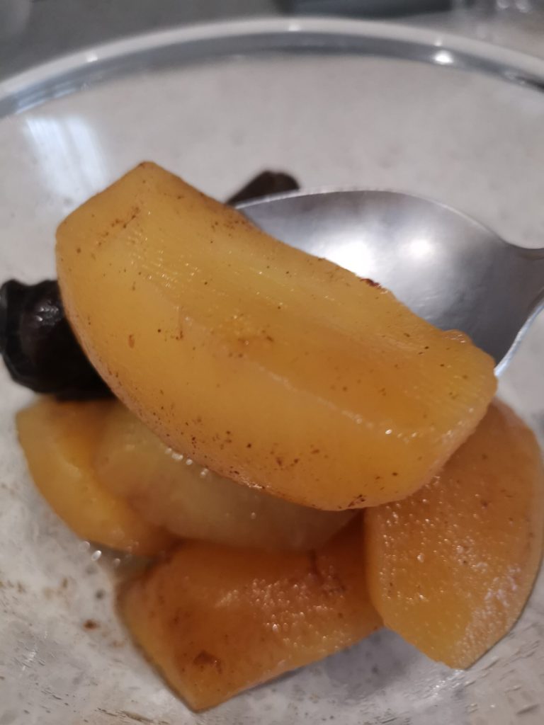 - 4 gedroogde pruimen (als je ze lekker vindt, anders alleen appels)