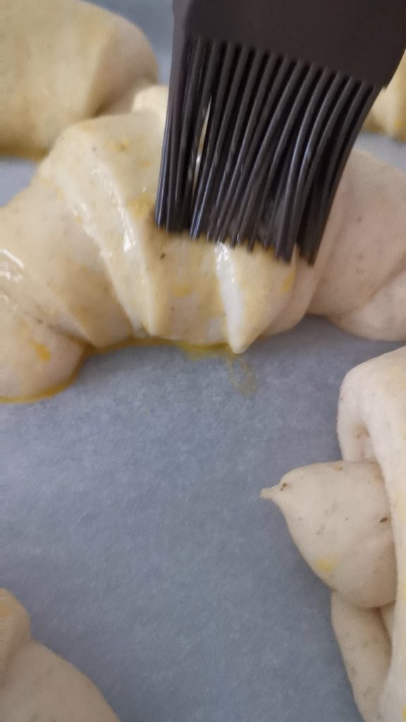 De cornetti blijven twee dagen goed onder een glazen stolp. Aangezien het er ongeveer 20 zullen zijn, vries ik ze in en haal ze eruit wanneer nodig. Meestal doe ik het de avond ervoor voor het ontbijt, maar als ik er ’s middags een wil eten en de croissant ligt nog in de vriezer, neem ik hem en doe ik hem twee minuten in de magnetron of in de pan of oven.