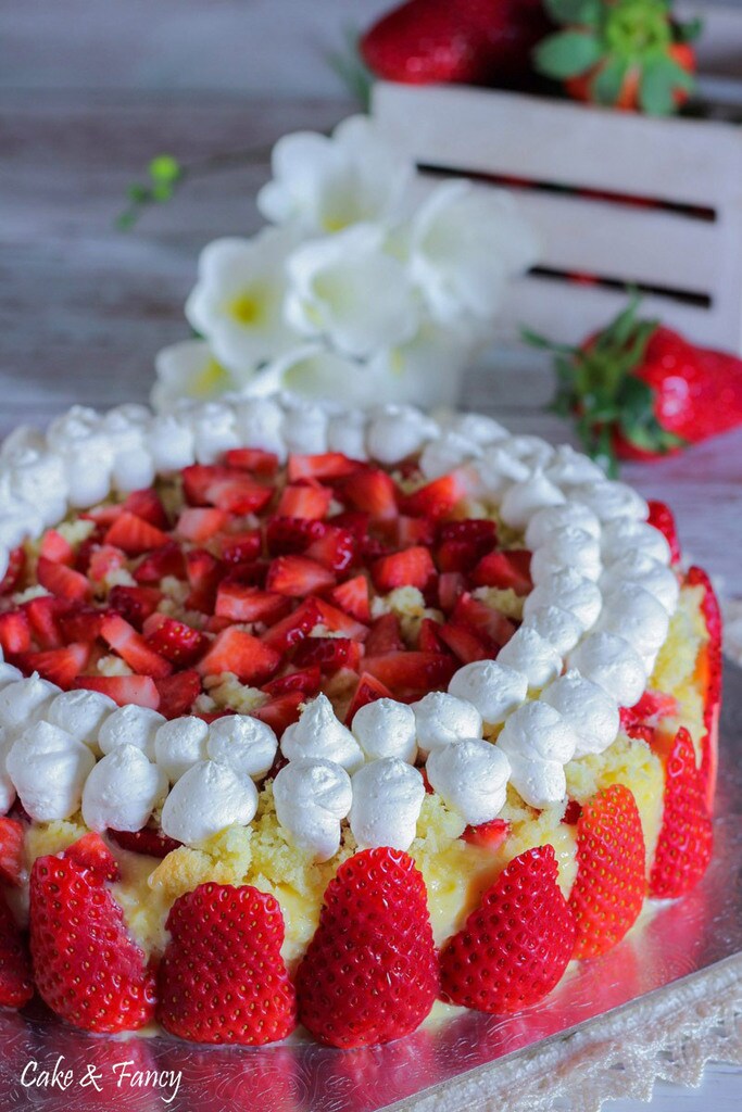Snijd de biscuit in twee schijven en verwijder het korstje dat tijdens het bakken ontstaat, leg een schijf op een serveerschaal en bestrijk met alchermes. Bedek met banketbakkersroom en stukjes aardbeien. Neem de tweede schijf biscuit en snijd deze in stukjes, nu op de laag room leggen we de stukjes biscuit en de aardbeien die we met citroen hebben laten marineren. Giet de slagroom in een spuitzak en maak toefjes over de hele omtrek, versier ten slotte met aardbeienpartjes en geniet van deze traktatie!