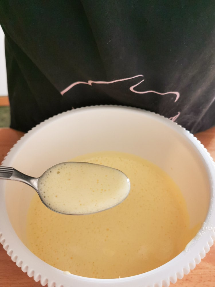 Klop met de elektrische kloppers op gemiddelde snelheid gedurende ongeveer 15/20 minuten. De eieren moeten hun volume verdrievoudigen, waardoor een luchtig en schuimig beslag ontstaat. Het zal lijken op een mooie, dikke room.Schakel vervolgens de kloppers uit en voeg de gezeefde bloem en aardappelzetmeel in kleine hoeveelheden toe. Werk het mengsel met een houten lepel of een handklopper, met lichte bewegingen van onder naar boven om het mengsel niet te laten inzakken, totdat alle bloem is opgenomen.