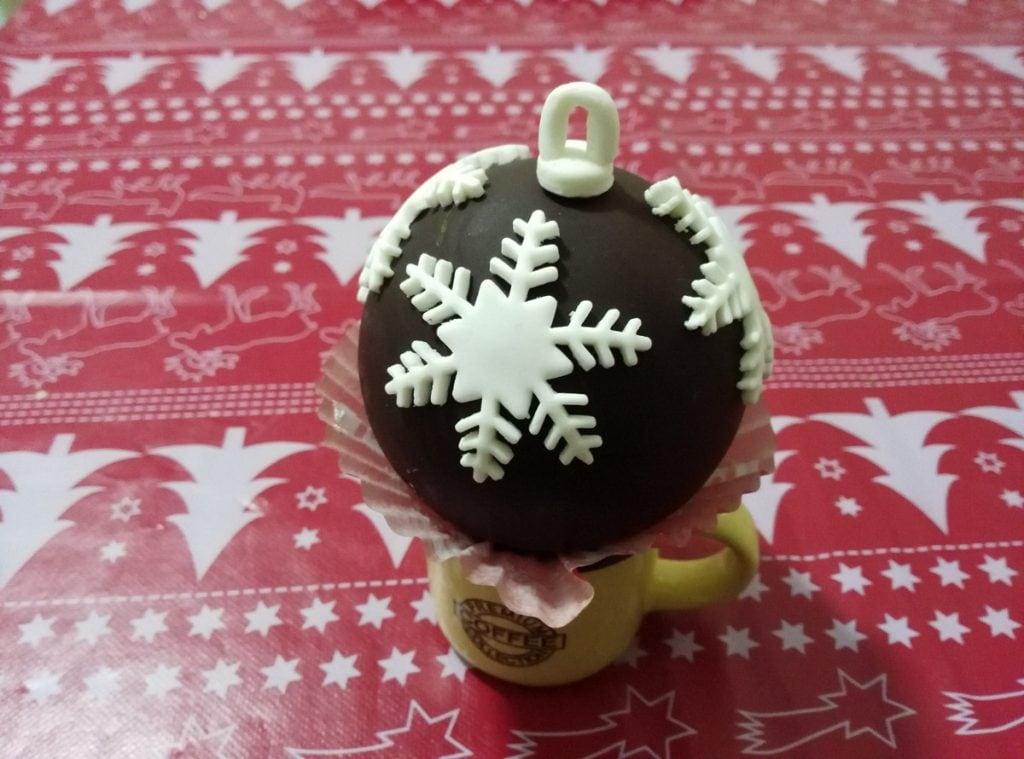Tot slot, maak decoraties met de suikerpasta, rol het uit en snijd de sneeuwvlokken met de vormpjes; borstel vervolgens de vlok met een beetje gesmolten chocolade en hecht de versiering aan het chocoladeballetje. Nu zijn je Chocoladeballetjes klaar om geserveerd te worden, zijn ze niet prachtig?😉 Geniet ervan!