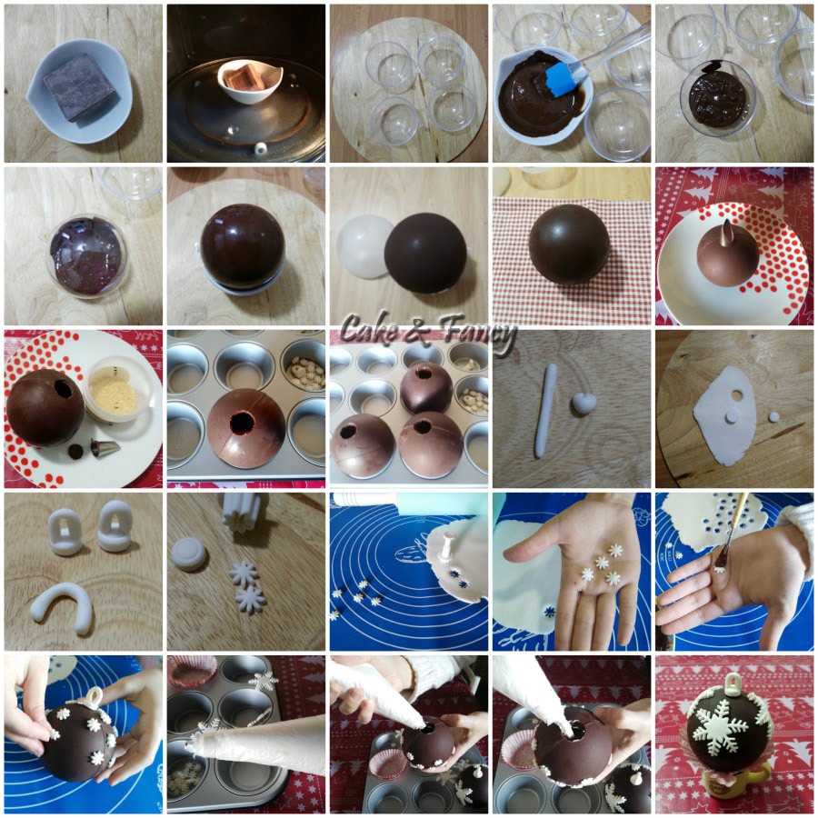 Na de tijd haal je de bol uit de koelkast, als de chocolade goed is uitgehard, komt het vanzelf los van de mal. Anders, plaats het balletje opnieuw in de vriezer voor nog eens 5 minuten. Bij het openen van de bol om het chocoladeballetje te verwijderen, moet je heel voorzichtig zijn om geen barsten te creëren of in het ergste geval de chocolade te breken.