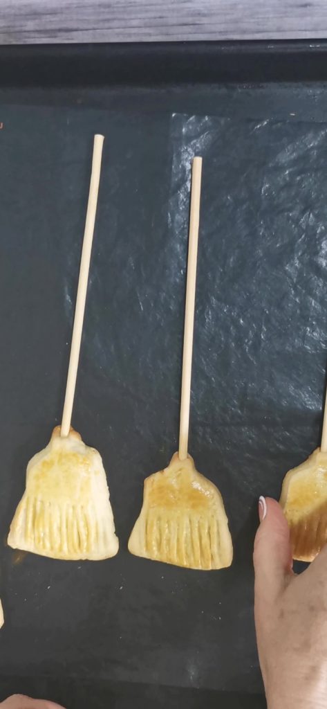 Steek nu, in het bovenste deel van de bezemsteel, voorzichtig een houten spies door om het handvat te maken en bak op 170/180°C gedurende ongeveer 10/12 minuten, bepaal altijd zelf de tijd en temperatuur met jouw oven.Zodra de koekjes goudbruin zijn, zijn ze klaar. We moeten nu snel de spies verwijderen, doe dit wanneer de korst nog warm is, anders kan het koekje breken.