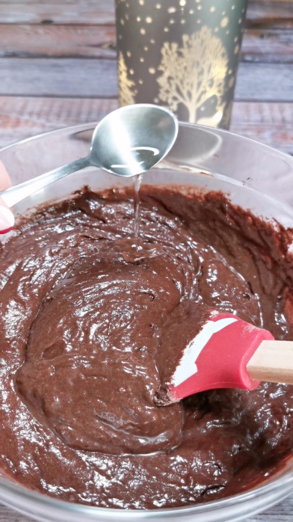 • In een grote kom zeef je de bloem, het bakpoeder en de cacao. Voeg de suiker toe en meng de ingrediënten.