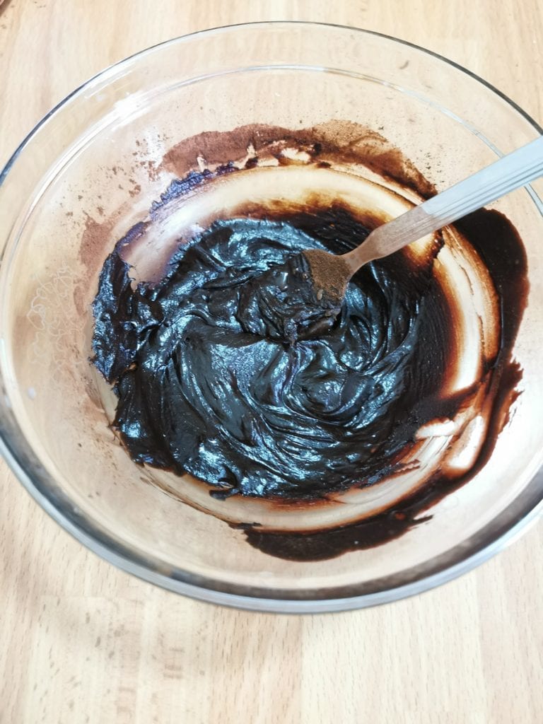 Voeg nu de emulsie toe aan het deeg, en bereid de pure en witte chocolade-druppels voor, die later nodig zijn.