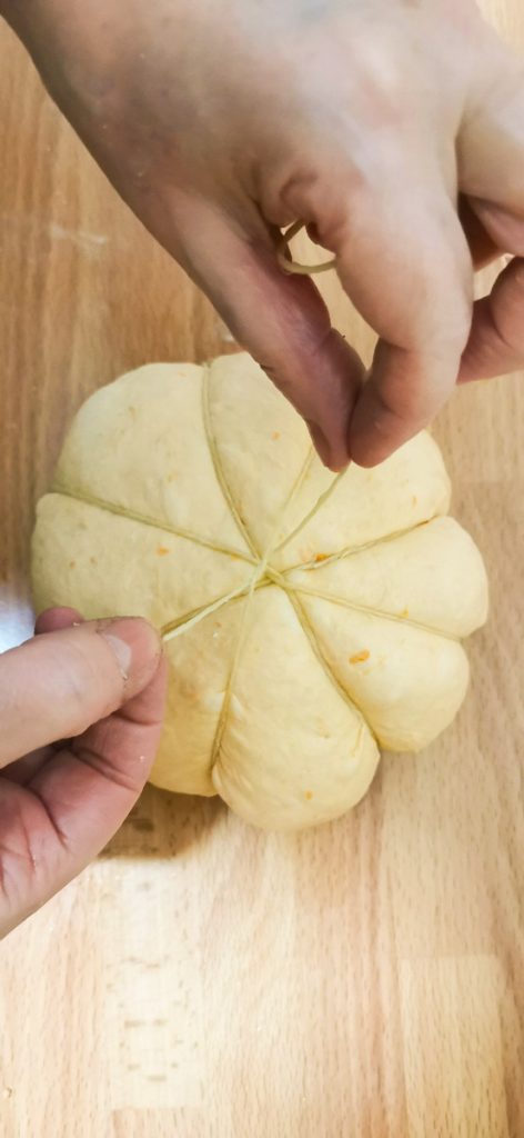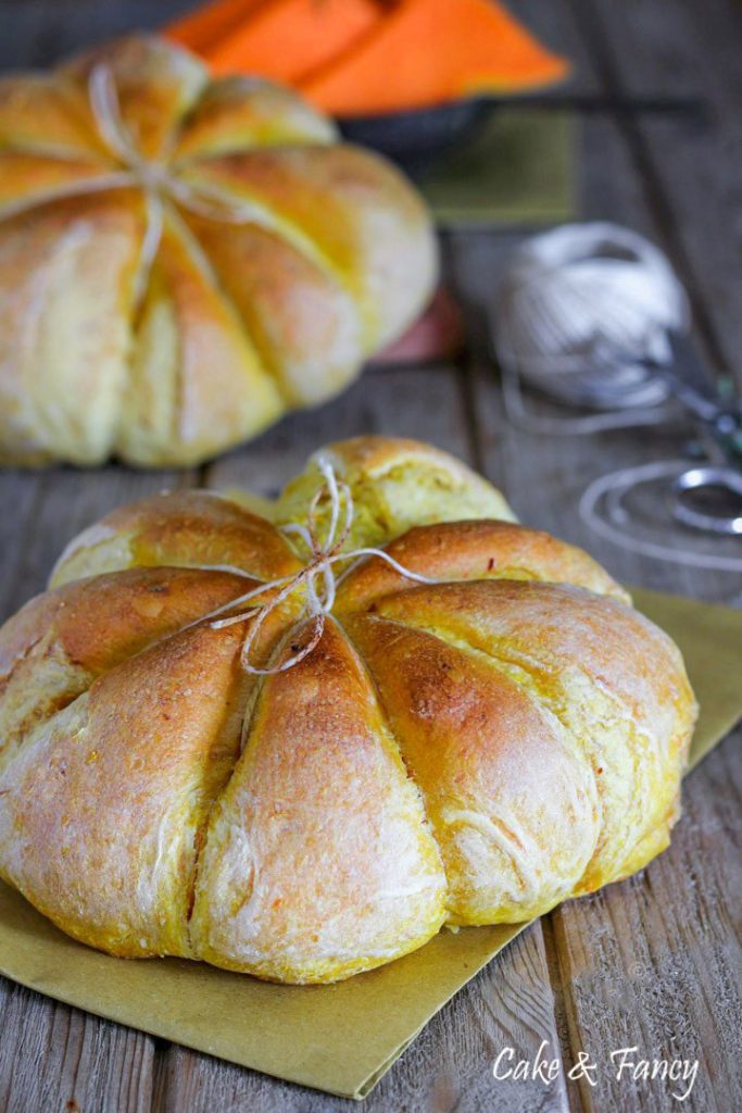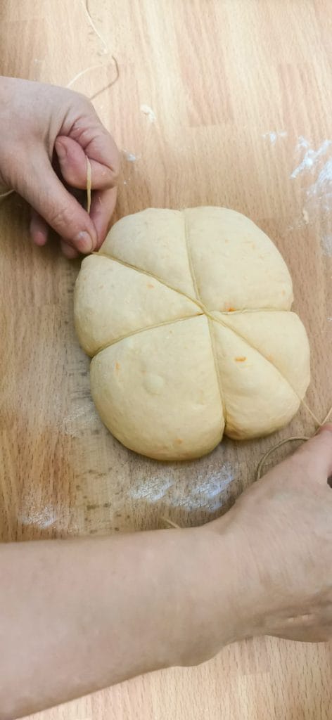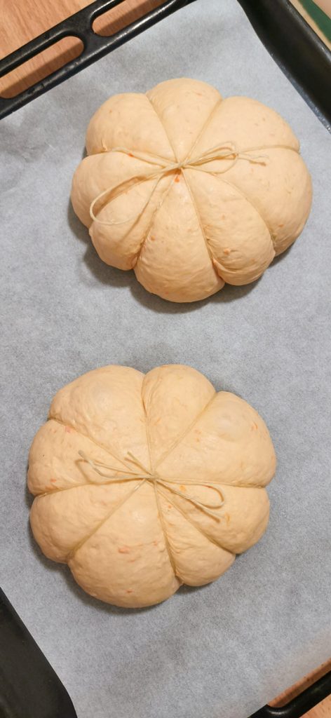 Het pompoenbrood is een echte traktatie, zacht, kleurrijk en mooi om te zien. De pompoen is een perfecte groente in de keuken, delicaat en veelzijdig voor zowel zoete als hartige bereidingen. Dit brood is niet alleen uitnodigend, maar ook prachtig om onze tafel te versieren. Heerlijk en gemakkelijk te maken, zelfs in de vorm, want je hoeft alleen maar keukentouw te gebruiken om het deeg de vorm van een prachtige pompoen te geven.