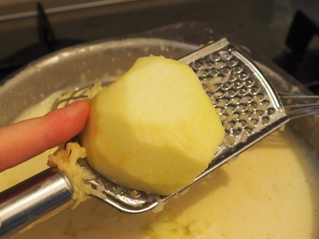 • Was de appel, schil hem, verwijder het klokhuis en rasp hem (ik gebruik de rasp voor citroenschil).