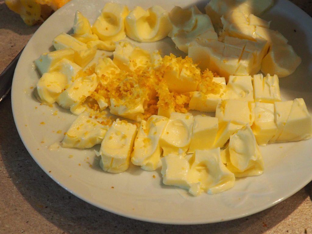 • Haal de boter uit de koelkast en laat deze zacht worden. Rasp de schil van een citroen erover.