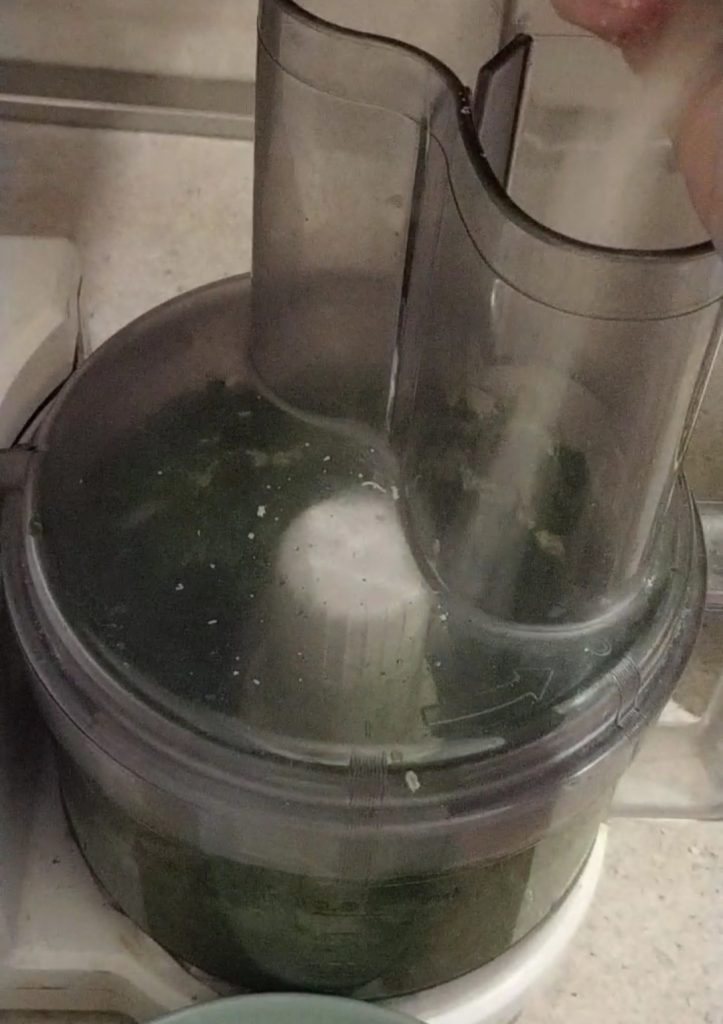 Eenmaal uitgelekt, doe de bladeren in een mixer. Je kunt ze desgewenst in stukjes breken.