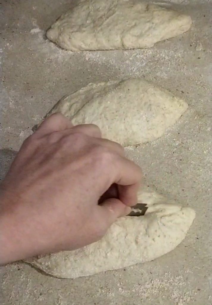 Rond 09.00 uur verdeelde ik het in 6 bolletjes die ik ongeveer 3 uur lang liet rijzen op een met bloem bestoven oppervlak, afgedekt met plasticfolie en een theedoek. De bolletjes wogen elk ongeveer 170-180 gram.