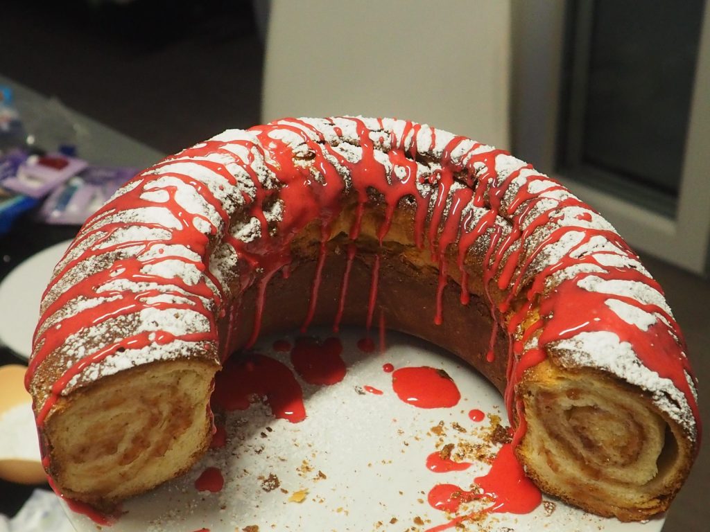 Het Carnaval Kransje met Kaneel is een heerlijke en geurige cake, vrolijk en kleurrijk gemaakt door een roze en blauwe glazuur. Als je wilt, kun je het ook vullen met wat jam naar jouw favoriete smaak.