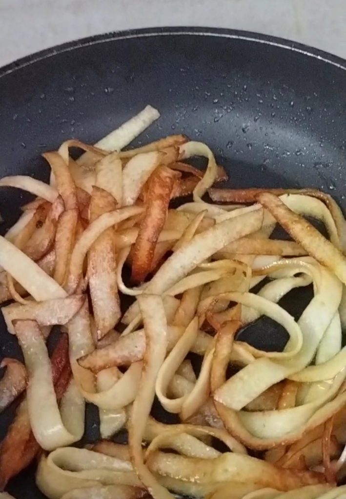Voeg de nep-tagliatelle toe en meng goed.