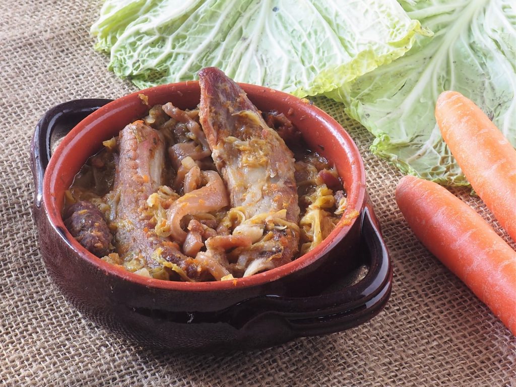 Ik hou van regionale recepten, die van generatie op generatie worden doorgegeven en die verloren gaan in de nacht der tijden. De Novarese casoeula is een gerecht waarin savooikool en de minder edele delen van het varken worden gebruikt, zoals de varkenshuid, voetjes en ribben. Minder beroemd dan de Lombardische casoeula, maar even heerlijk, onderscheidt het zich vooral omdat het mogelijk is om ook ganzenvlees toe te voegen naast varkensvlees. In dit geval heb ik alleen varkensvlees gebruikt. De term casoeula is onderwerp van verschillende interpretaties. Er wordt gedacht dat het afkomstig is van cazzuola, omdat het werd gezegd dat het door bouwvakkers werd bereid door het met een troffel te roeren; van casserole, namelijk de pan waarin het werd gekookt; van de lepel die werd gebruikt om het te roeren (casseou); van een traditioneel Duits gerecht genaamd Kasseler op basis van varkensvlees en savooikool.