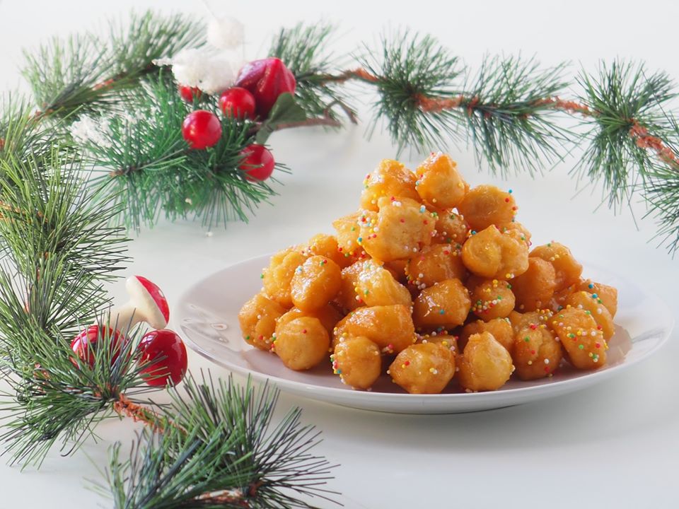 De “Struffoli” van Tante Lucia zijn een recept dat al vele jaren deel uitmaakt van de familietraditie. Uiteraard worden ze altijd met Kerstmis bereid, ze mogen nooit ontbreken op onze tafel. Dit recept is al jaren door onze familie doorgegeven, afkomstig uit Pietrelcina, in de provincie Benevento, en daarom wordt er een bijzondere likeur gebruikt, de Strega.