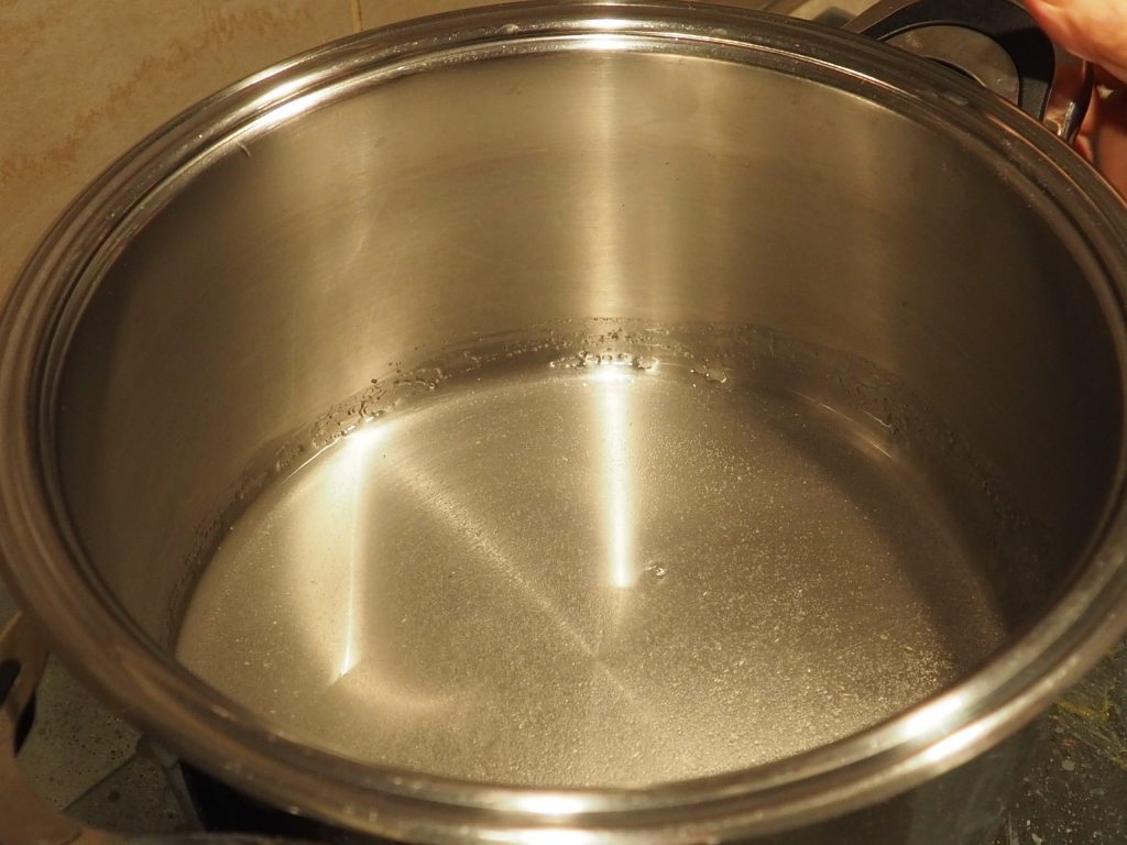 Ondertussen zet je een grote pan met water op, zodra het kookt, gooi je de taralli erin. Wanneer ze boven komen drijven, haal ze eruit met een schuimspaan en leg ze in een pan met koud water.
