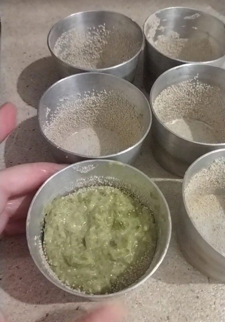 Vul de vormpjes voor ongeveer 3/4 met het bloemkoolmengsel. Ik heb 8 flans gekregen.