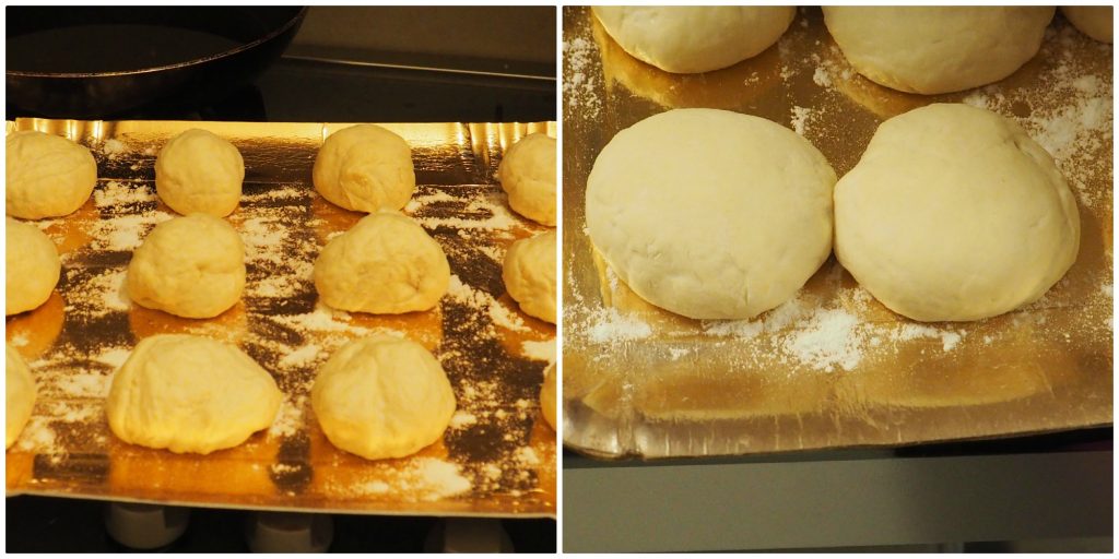 Maak 22/24 balletjes van ongeveer 70/75 g, leg ze op een met bloem bestoven blad om te rijzen.