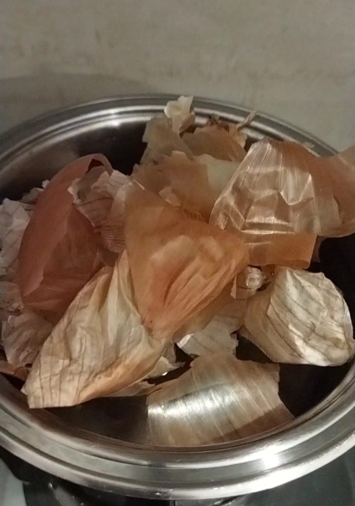 • Kook de eerder voorbereide eieren in water samen met de uienvellen gedurende ongeveer 10 minuten.