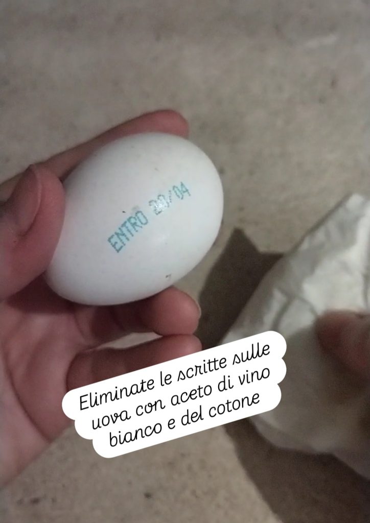 • Verwijder de opschriften op de rauwe eieren met een watje gedrenkt in witte wijnazijn.