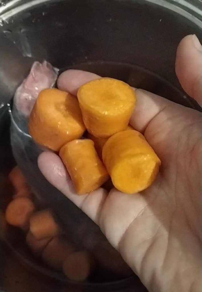• Was en maak de wortels en uien schoon. Snijd ze grof.