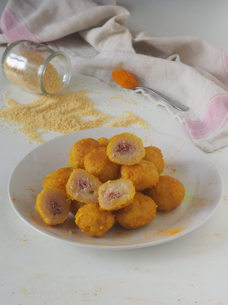 Mijn voortdurende zoektocht naar een mix van smaken uit verschillende keukens heeft me ertoe gebracht een nieuw recept uit te proberen: Gevulde couscous gnocchi. Ze zijn echt lekker en smaakvol, ik heb ze gevuld met emmentaler en spek, maar je kunt ervoor kiezen om vleeswaren en kazen naar smaak te gebruiken, het belangrijkste is dat de kaas niet te waterig is.