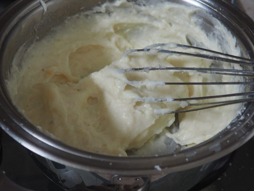 Het mengsel moet glad en zonder klontjes zijn, en enigszins vloeibaar.