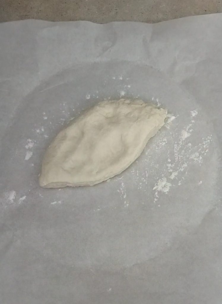 Na de rusttijd het deeg in twee gelijke delen verdelen.