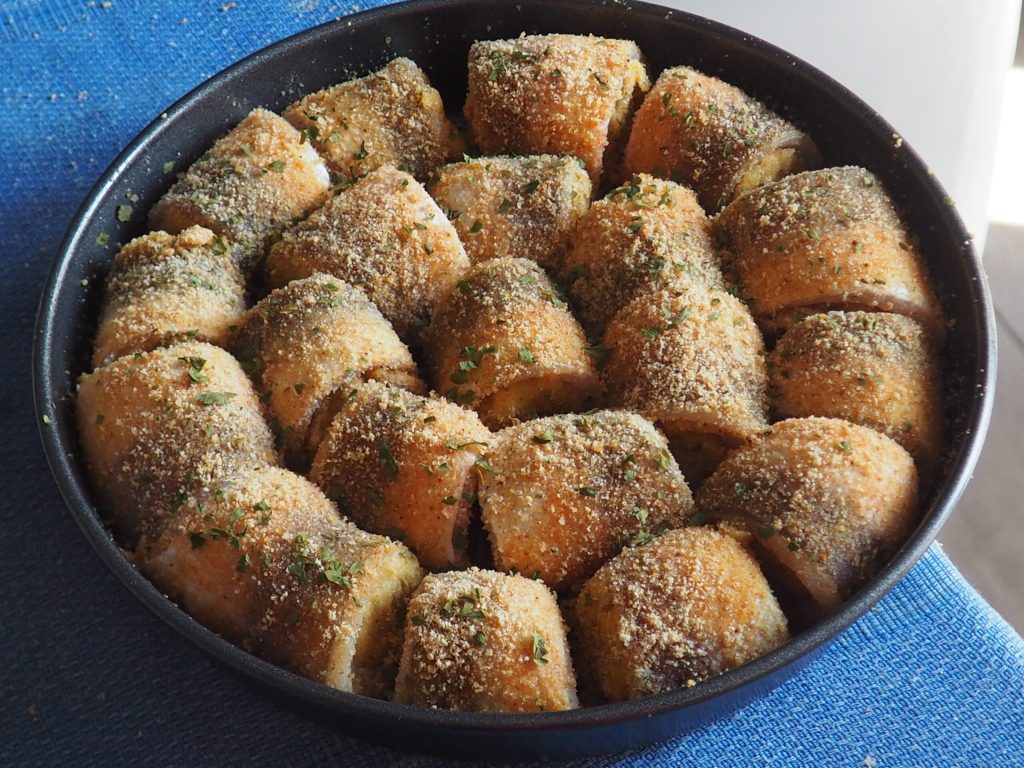 Bestrooi met een beetje paneermeel, peterselie en een beetje olie.