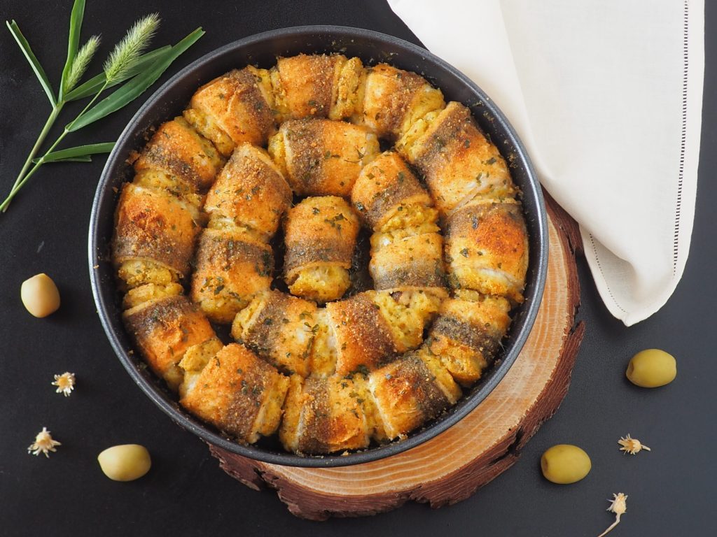 De gevulde rolletjes van poonfilets zijn een iets andere manier om deze heerlijke vis te bereiden. Ik heb besloten een smaakvolle vulling te gebruiken met kappertjes en olijven, maar als je wilt, kun je het eenvoudiger maken, alleen met paneermeel, peterselie en ei. De delicate maar volle smaak maakt het ook geschikt voor het bereiden van soepen of als dressing voor pasta. Als je geen poon kunt vinden, kun je ook verse ansjovis gebruiken. Ik heb al voorbereide poonfilets gebruikt, als je de vis zelf moet schoonmaken, is het proces zeker langer. Je moet onder de kieuwen snijden en de kop verwijderen, de vinnen met een schaar knippen, de buik insnijden en de ingewanden verwijderen, ga dan verder met het fileren van de poon door het flexibele mes van een mes tussen de centrale graat en het bovenste filet te steken, beginnend bij de kop tot aan de staart. Doe hetzelfde met het andere filet. Verwijder nu eventuele resterende graatjes.