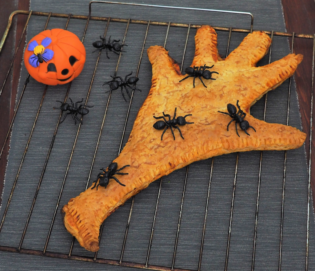 Mijn dochter is dol op pizza, maar houdt niet van zoetigheden, dus om een indrukwekkend recept te maken, wilde ik deze Hartige bladerdeeghand (Halloween) bereiden met een vulling die aan pizza doet denken. Eenvoudig en snel, maar echt lekker! Oh, de mieren zijn nep 🙂