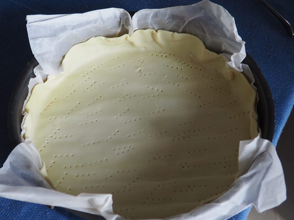 Leg het bladerdeeg op een bakplaat bedekt met bakpapier en prik er met een vork in om te voorkomen dat het tijdens het bakken opblaast.