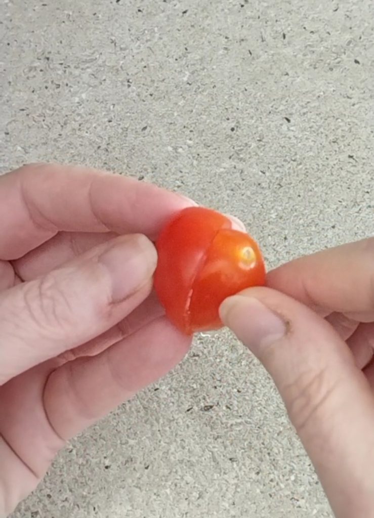 Voor een mooi hartje raad ik aan om datterino tomaten te gebruiken die een licht langwerpige vorm hebben.