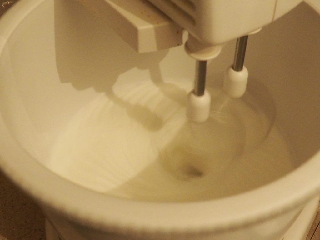 Blijf mixen met de mixer totdat het mengsel stevig is.