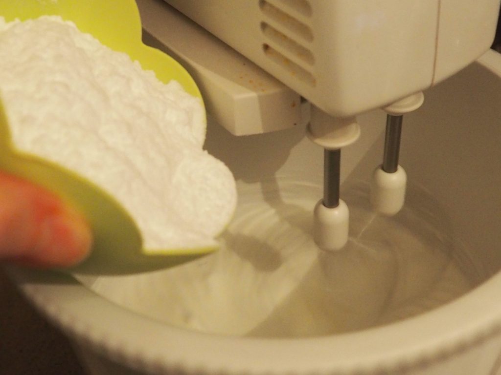 Het toevoegen van citroensap maakt de meringue glanzender, het toevoegen van maïszetmeel maakt de meringue steviger.