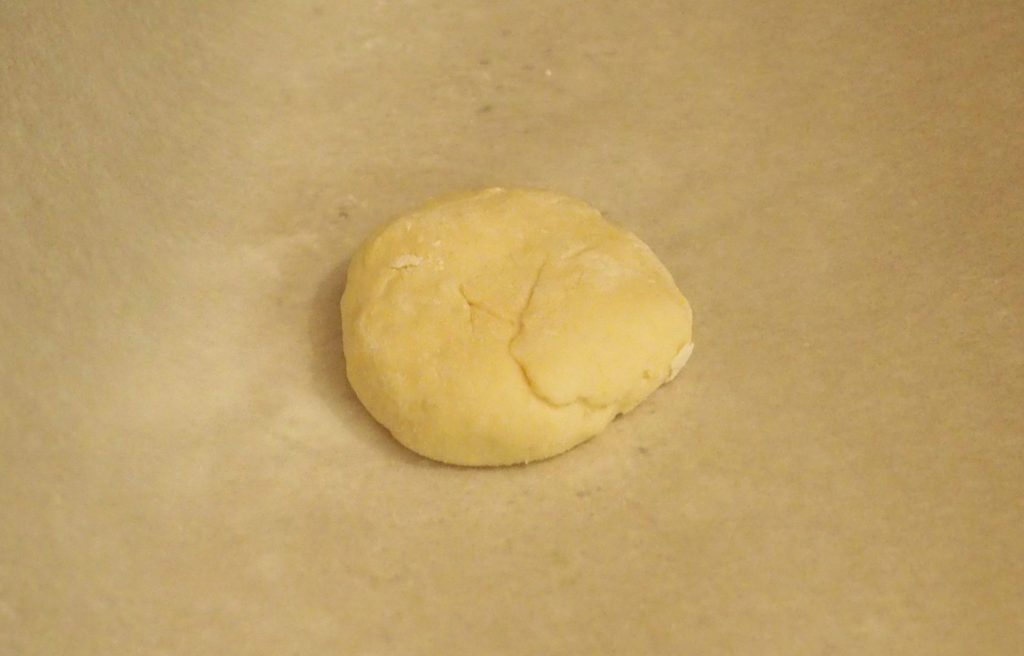 Rol ze uit met een deegroller, vorm een cirkel van ongeveer 22 cm in diameter.
