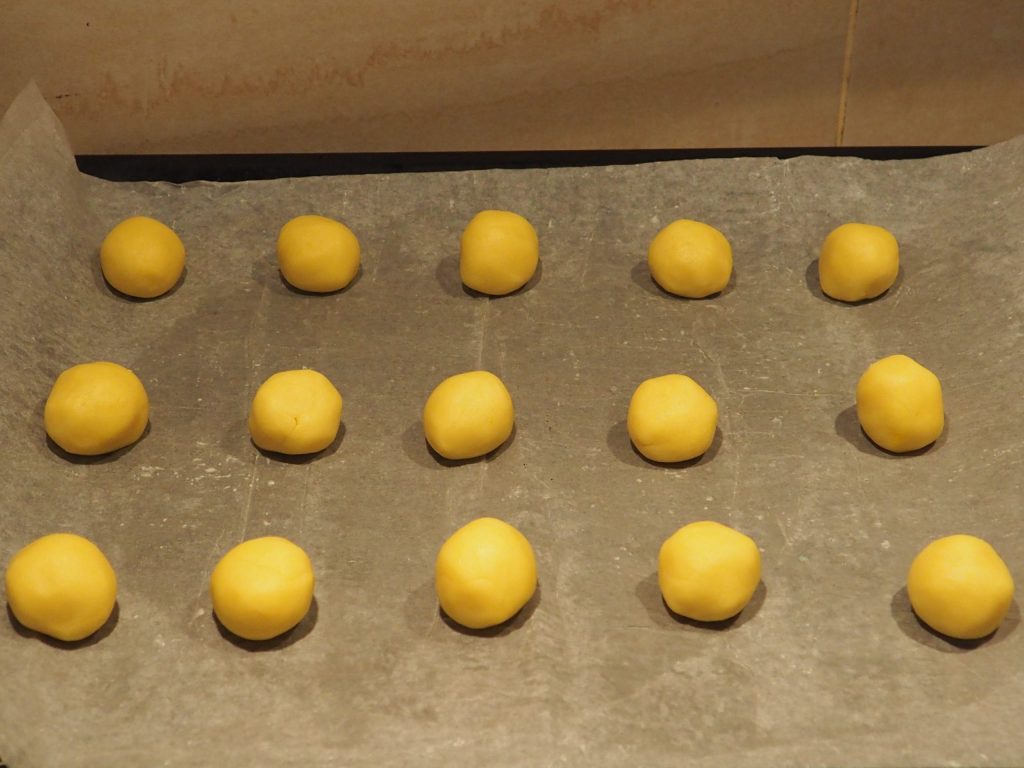 • Vorm nu balletjes van ongeveer 30 gram en een diameter van ongeveer 3 cm, je krijgt er ongeveer 30.