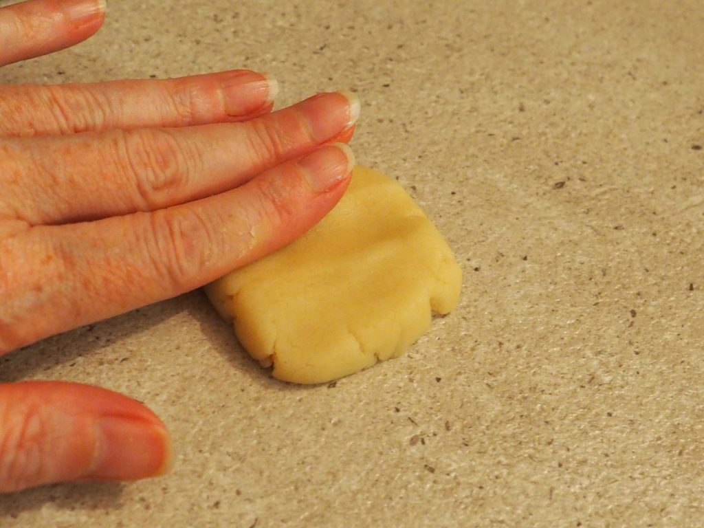 Druk elk balletje lichtjes plat en geef het een vierkante vorm.