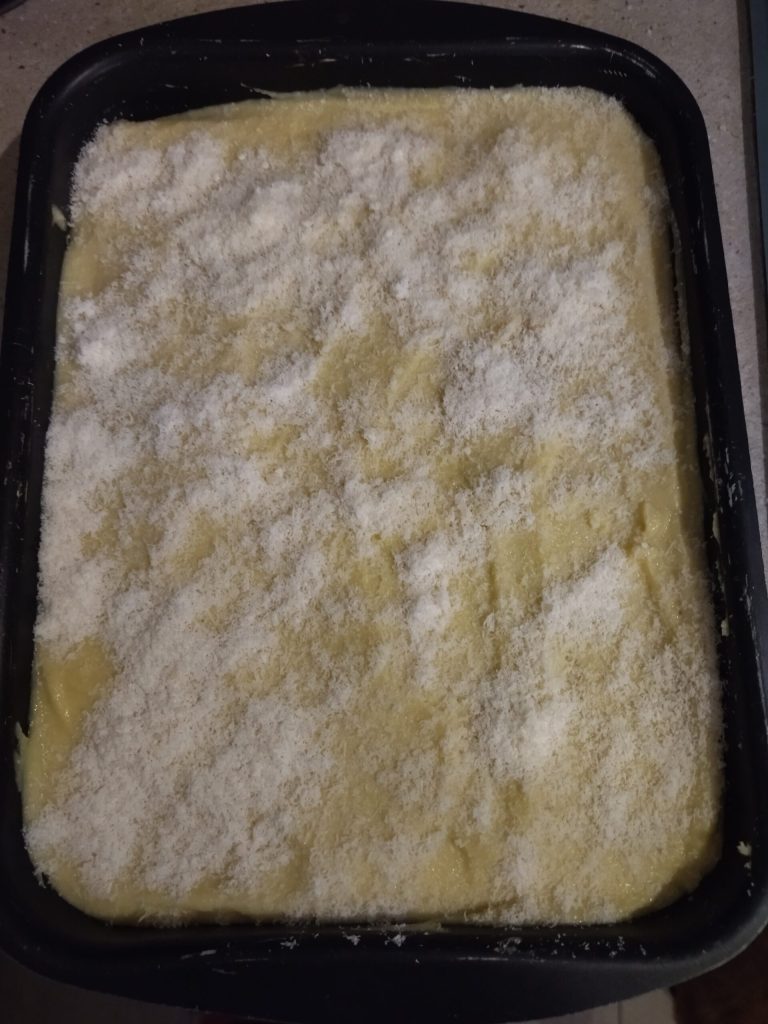 Ga zo verder, leg nog een laag lasagne, pompoen bechamel, zalm, mozzarella, Parmezaan. Maak 4 lagen lasagne en eindig met de pompoen bechamel en een snufje Parmezaan.