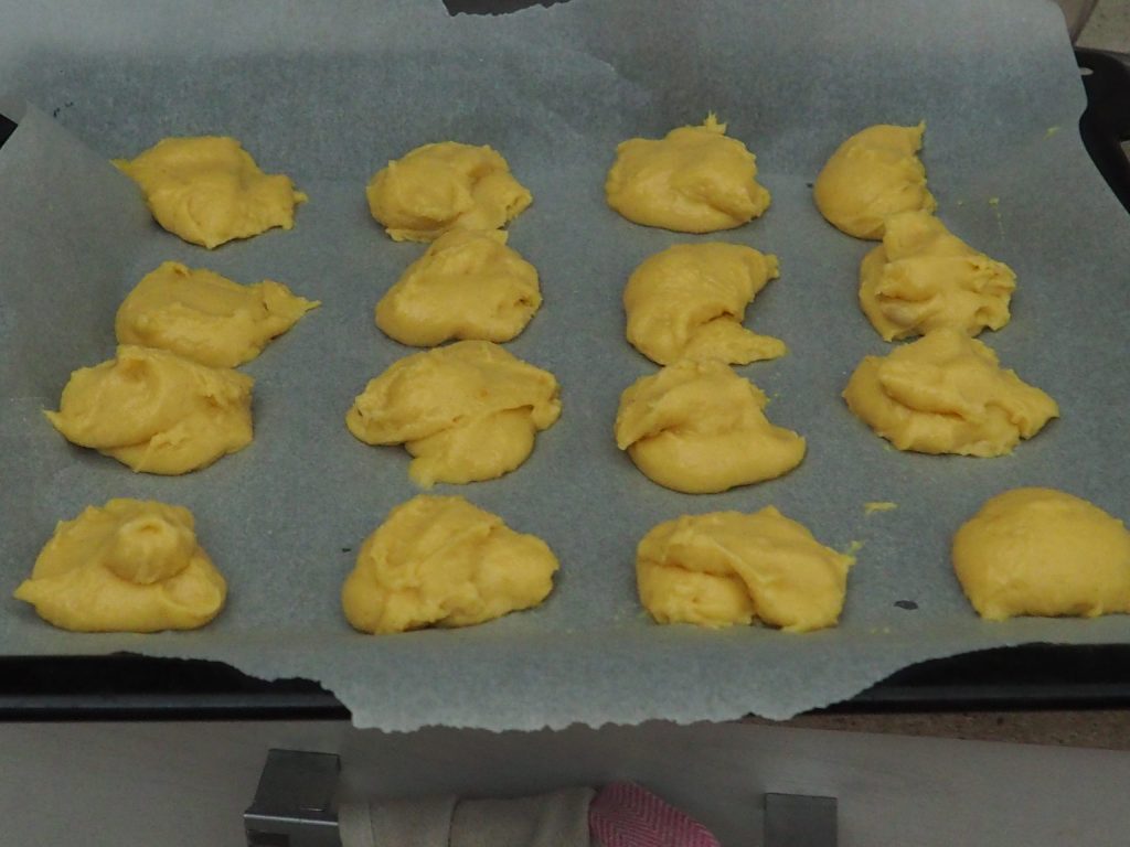 Doe een klein volle lepel mengsel voor elk koekje (het worden er ongeveer 60).