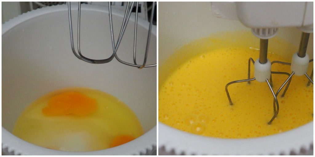 Doe de eieren in een kom en klop ze goed met een garde samen met de suiker.
