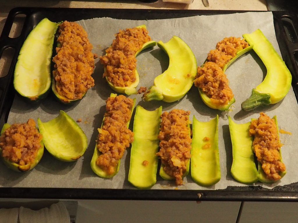 Met vlees gevulde courgettes