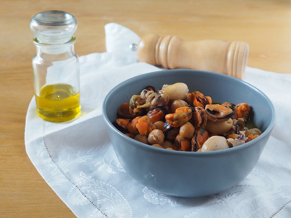 De mossel-, pijlinktvis- en kikkererwtensoep is een snel gerecht om te bereiden, omdat ik voor dit recept diepvriesvis en voorgekookte kikkererwten uit blik heb gebruikt. Als je het met verse vis wilt bereiden, zal het resultaat zeker beter zijn, maar ook zo vonden we het echt smakelijk!