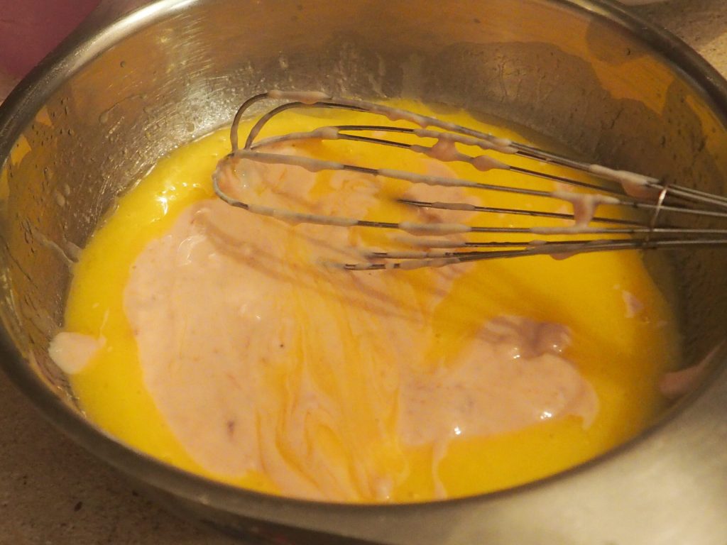 • Klop in een kom het ei met de olie met een garde tot een goed gemengd mengsel.