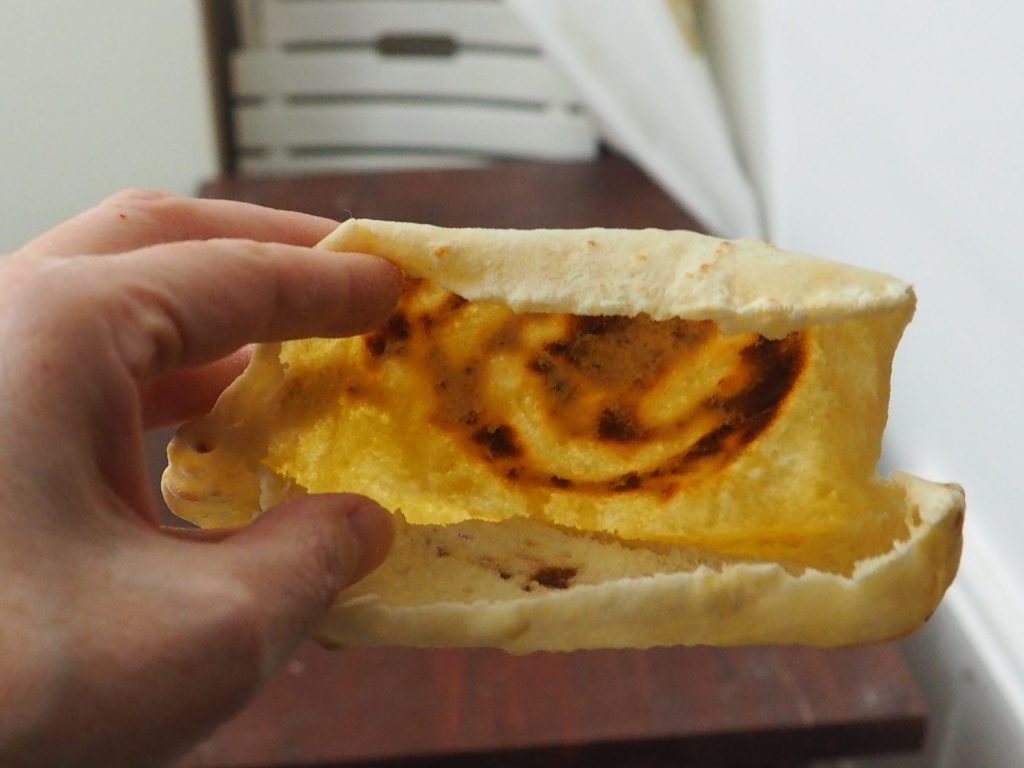 • En hier is je platbrood, klaar om gevuld te worden met ingrediënten naar eigen smaak.