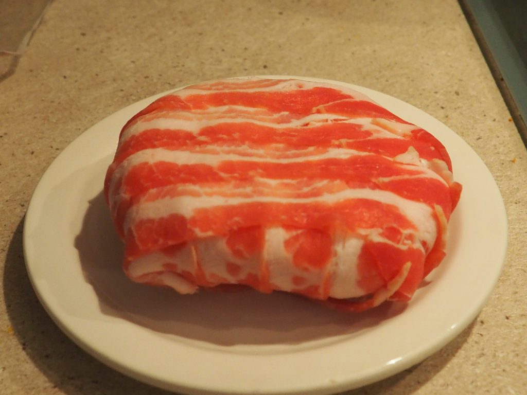 Doe hetzelfde, door het spek ook in de andere richting rond de paneer te wikkelen, zodat het volledig is bedekt.