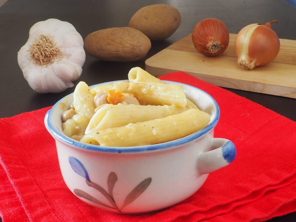De Penne rigate met kikkererwten en aardappelen is een smakelijk hoofdgerecht dat je in zeer korte tijd kunt bereiden. Het is geen soep, maar een romige en heerlijke pastaschotel.