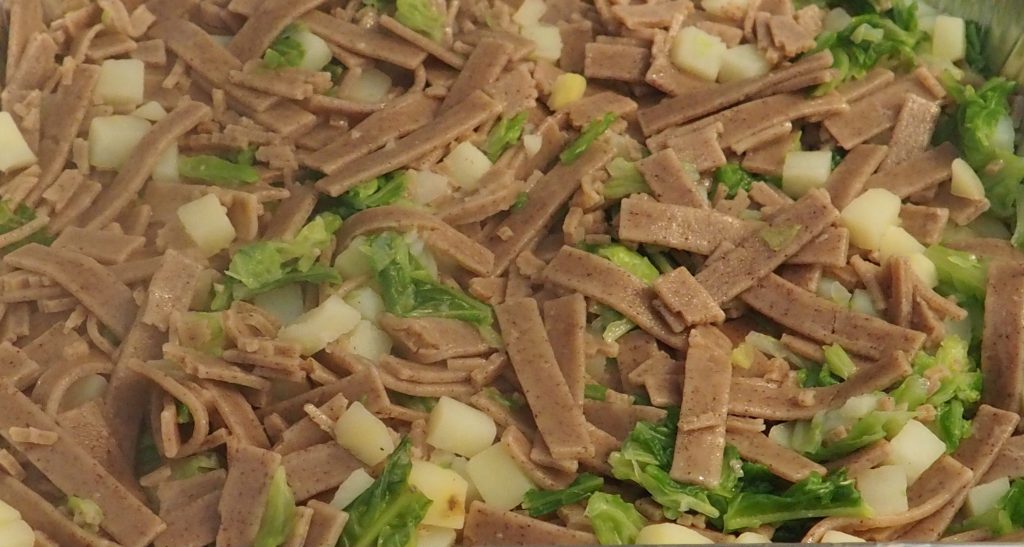 Ik hou erg veel van volkorenpasta, van 5 granen of nog beter, die van boekweit. En wat is een betere manier om het te proeven, dan met dit heerlijke gerecht van Pizzoccheri met savooikool, aardappelen en casera? Dit typische gerecht uit Valtellina zal je verrassen met zijn bijzondere, maar prikkelende smaak! Probeer het en laat me weten wat je ervan vindt. Het originele recept bevat casera, maar als je wilt, kun je bitto gebruiken. In Piemonte is een vergelijkbare kaas, als je bitto of casera niet kunt vinden, raschera.